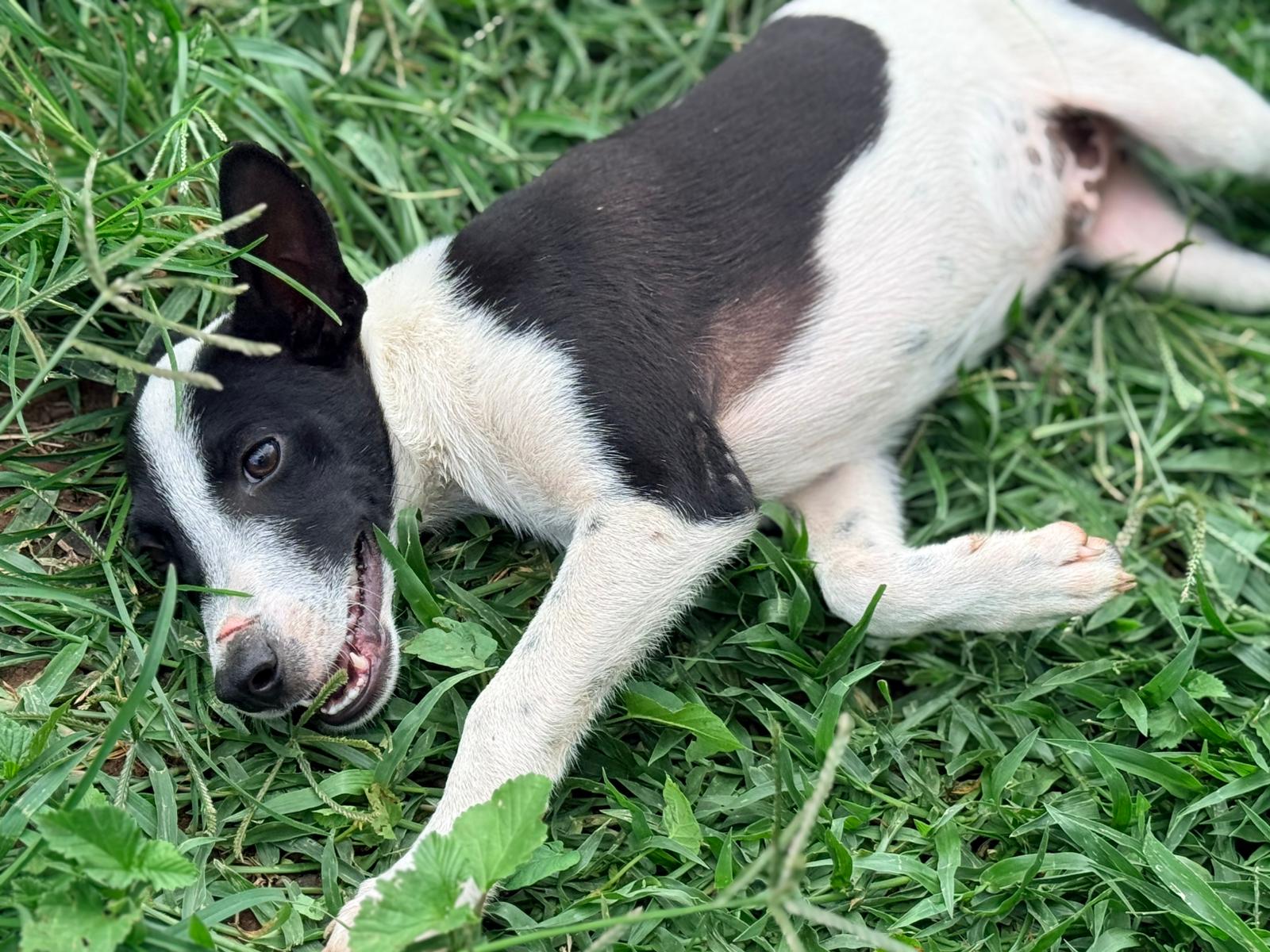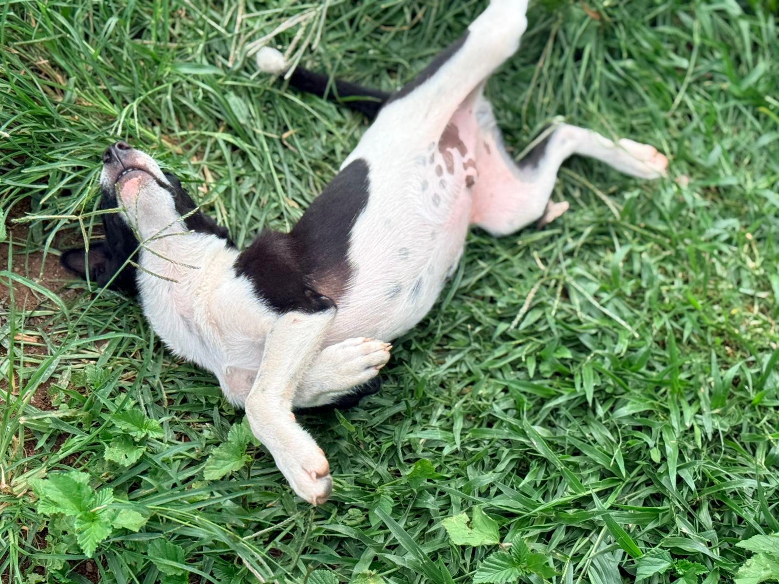 Ce petit chiot, sa sœur et leur maman se sont réfugiés sous le hangar d’un particulier au grand cœur, qui a décidé de les aider et nous a immédiatement contactés.